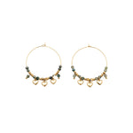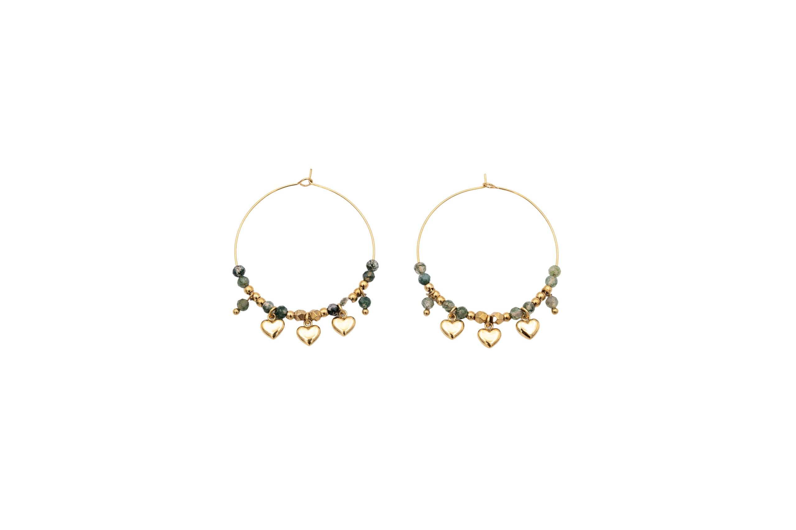 Orecchini in acciaio e pietre naturali, cuoricini pendenti.