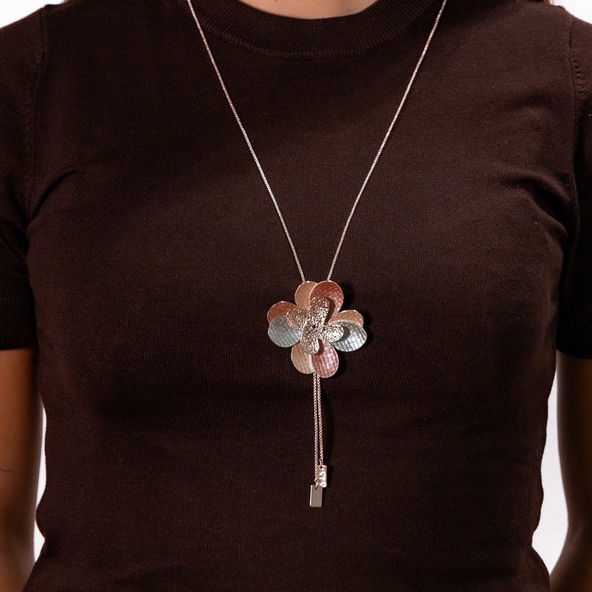 The product Double flower necklace it is nickel, cadmium and lead free. It is strictly produced only with commonly hypoallergenic and certified materials.
