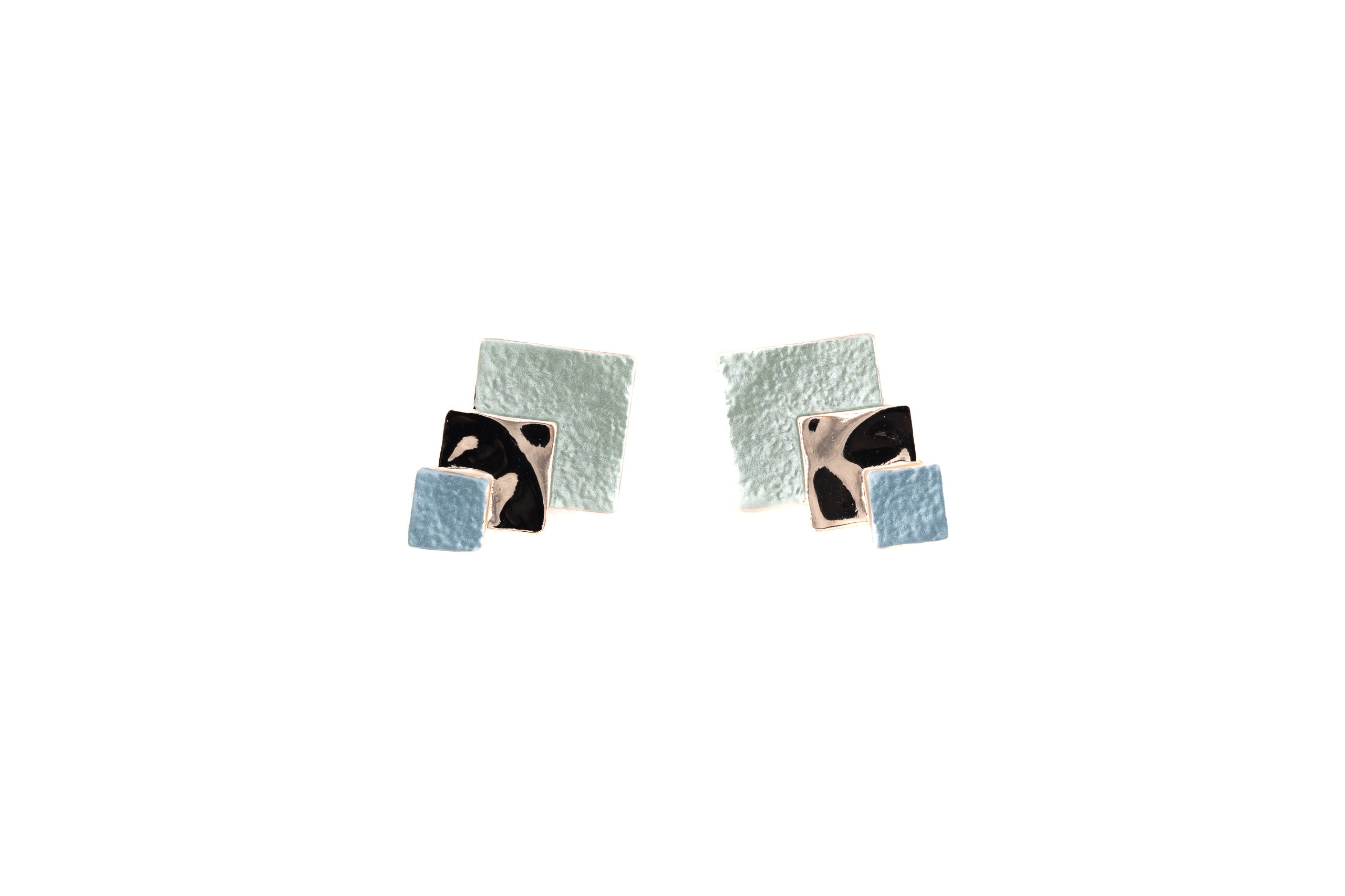 Three square earlobe earrings